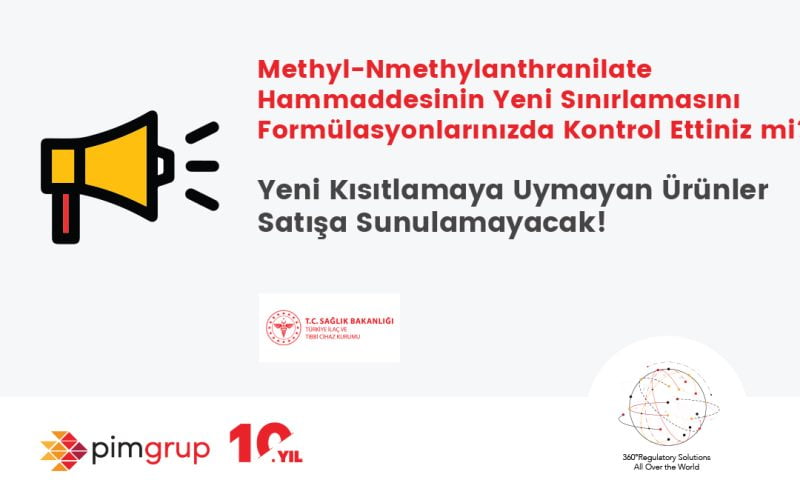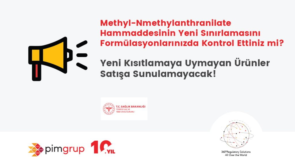 24 Kasım 2022Yazar PİM Grup tarafından 24 Kasım 2022Kategori DuyurularMethyl-Nmethylanthranilate Hammaddesinin Yeni Sınırlamasını Formülasyonlarınızda Kontrol Ettiniz mi?Methyl-Nmethylanthranilate hammaddesini içeren ve kısıtlamalara uymayan Kozmetik ürünler, 21 Kasım 2022 tarihi itibari ile satışa […]