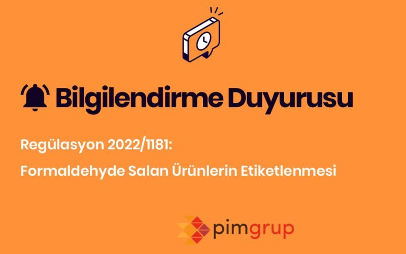 18 Temmuz 2022Yazar PİM Grup tarafından 18 Temmuz 2022Kategori DuyurularRegülasyon 2022/1181: Formaldehyde Salan Ürünlerin EtiketlenmesiFormaldehit hammaddesine (CAS No 50-00-0, EC No 200-001-8), 1272/2008 Sayılı Tüzük (EC) Ek VI Bölüm […]
