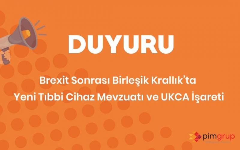 25 Ağustos 2022Yazar PİM Grup tarafından 25 Ağustos 2022Kategori DuyurularBrexit Sonrası Birleşik Krallık’ta Yeni Tıbbi Cihaz Mevzuatı ve UKCA İşaretiUKCA (UK Conformity Assessed) işareti, Büyük Britanya’da (İngiltere, Galler ve İskoçya) piyasaya sürülen ürünler için […]
