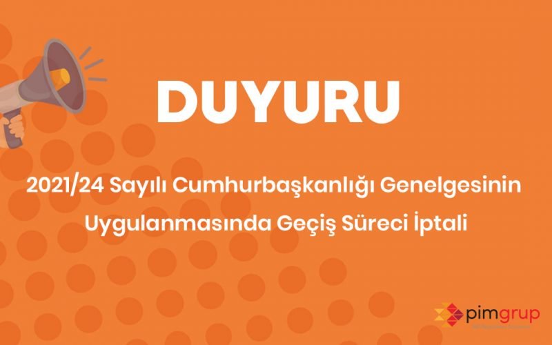 10 Ocak 2022Yazar PİM Grup tarafından 10 Ocak 2022Kategori Duyurular2021/24 Sayılı Cumhurbaşkanlığı Genelgesinin Uygulanmasında Geçiş Süreci İptaliBilindiği üzere, “Türkiye” markasını güçlendirme çalışmaları kapsamında; başta diğer devletler ve uluslararası kurum ve kuruluşlarla […]